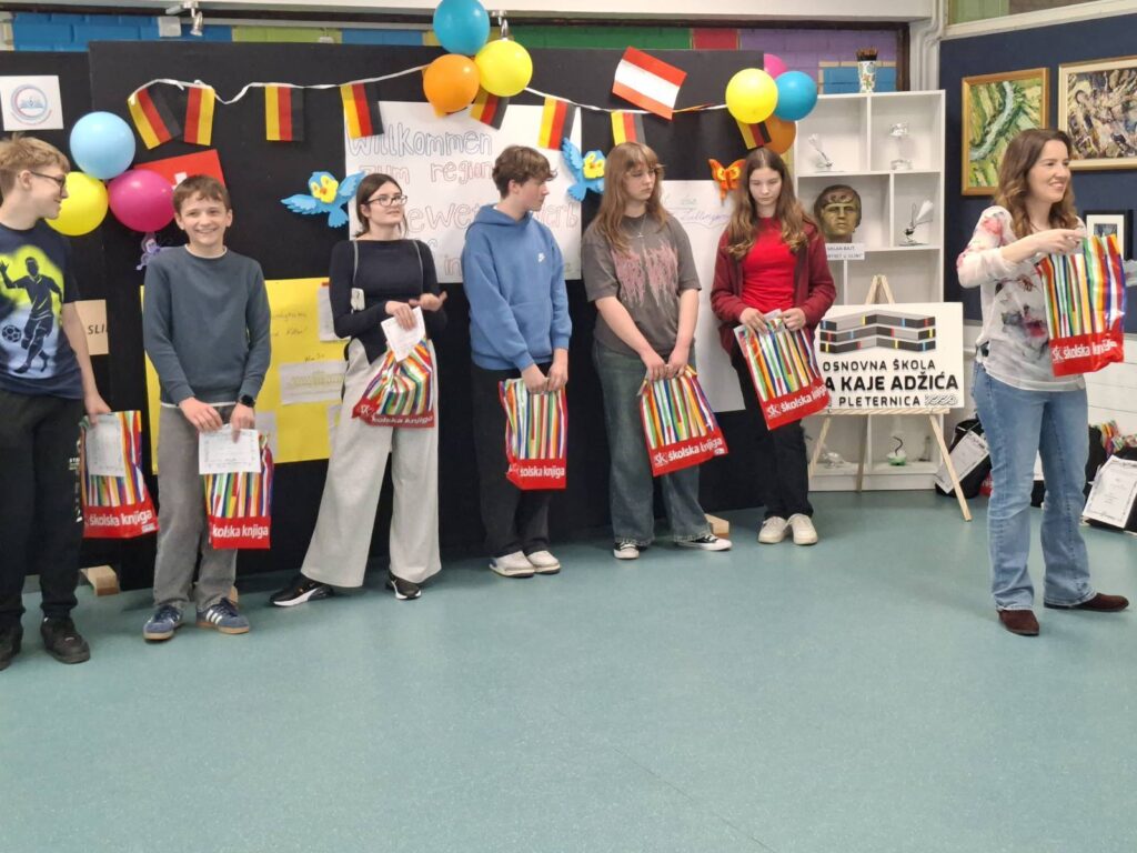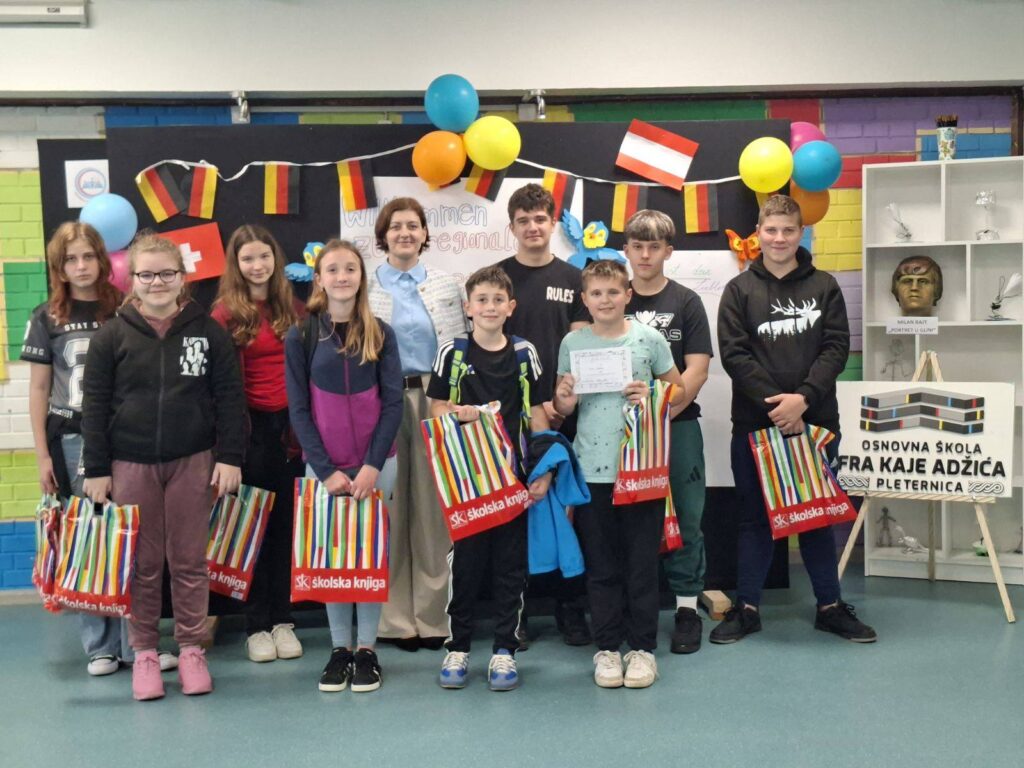 U OŠ fra Kaje Adžića u Pleternici održano je Međužupanijsko natjecanje u lijepom čitanju na njemačkom jeziku. Natjecali su se učenici koji njemački uče od 1.razreda tj. kao redovni predmet, zatim učenici kojima je njemački izborni predmet te učenici povratnici iz zemalja njemačkog govornog područja.  Naši predstavnici bili su: