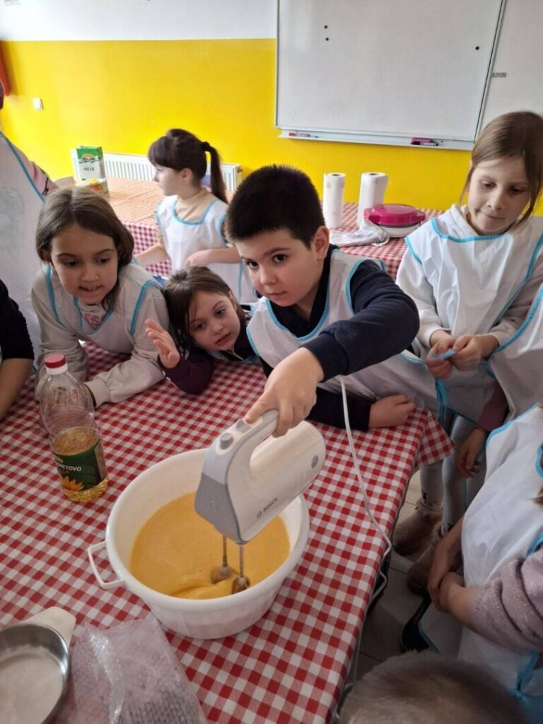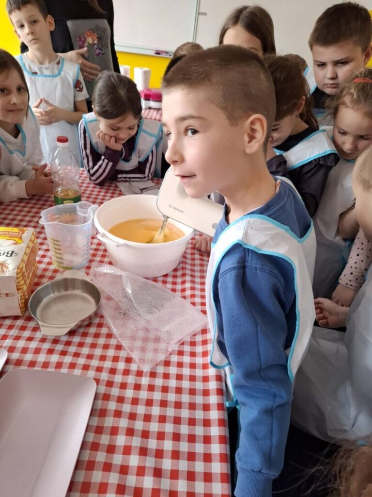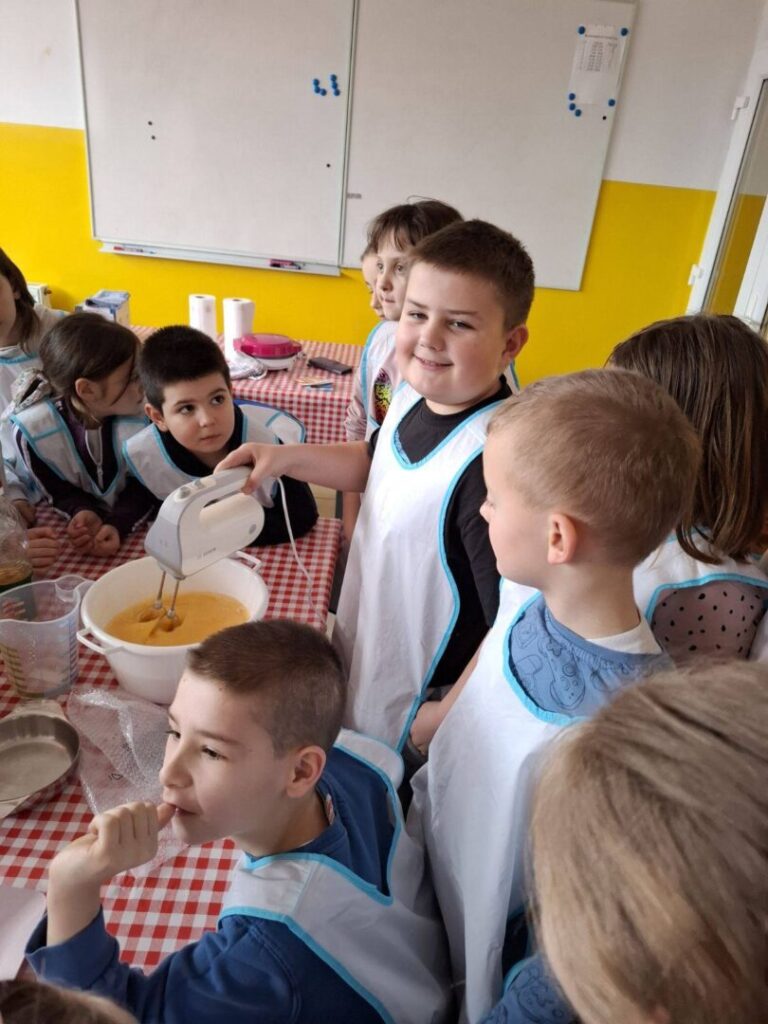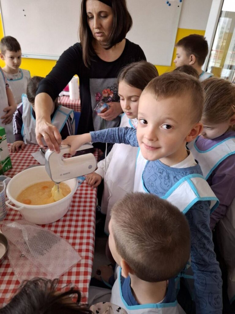 Učenici su najprije učili iščitati recept i pratiti upute, a zatim su se okušali u pripremi smjese. Kroz aktivnost su ponovili i važno gradivo iz matematike – koliko 1 litra ima decilitara te kako se pretvaraju mjerne jedinice mase (kilogrami, dekagrami i grami). Učenje je bilo zanimljivo, opipljivo i, što je najvažnije, vrlo ukusno.