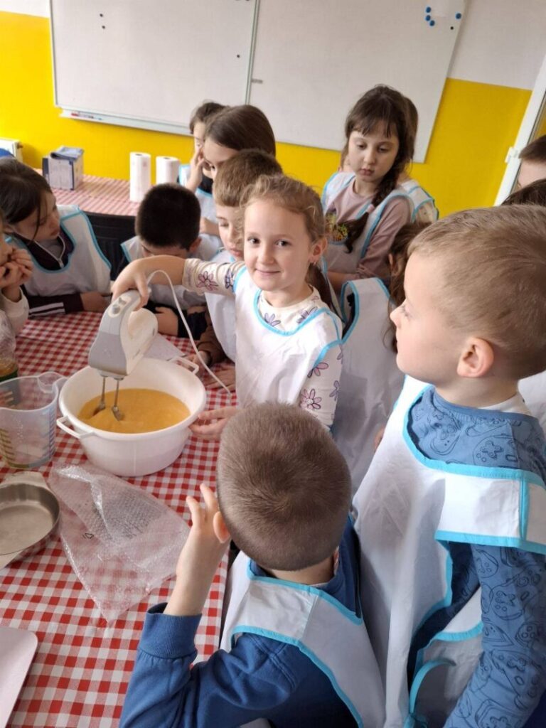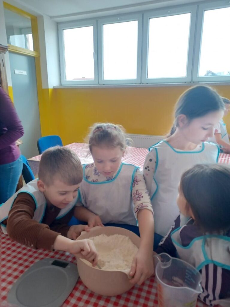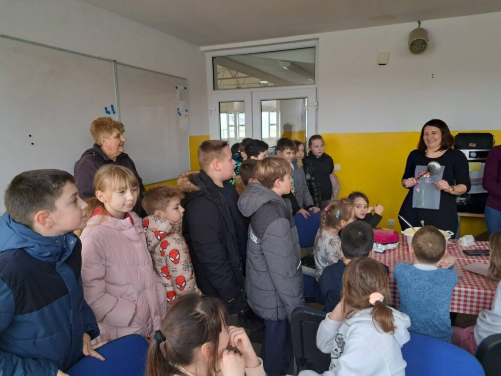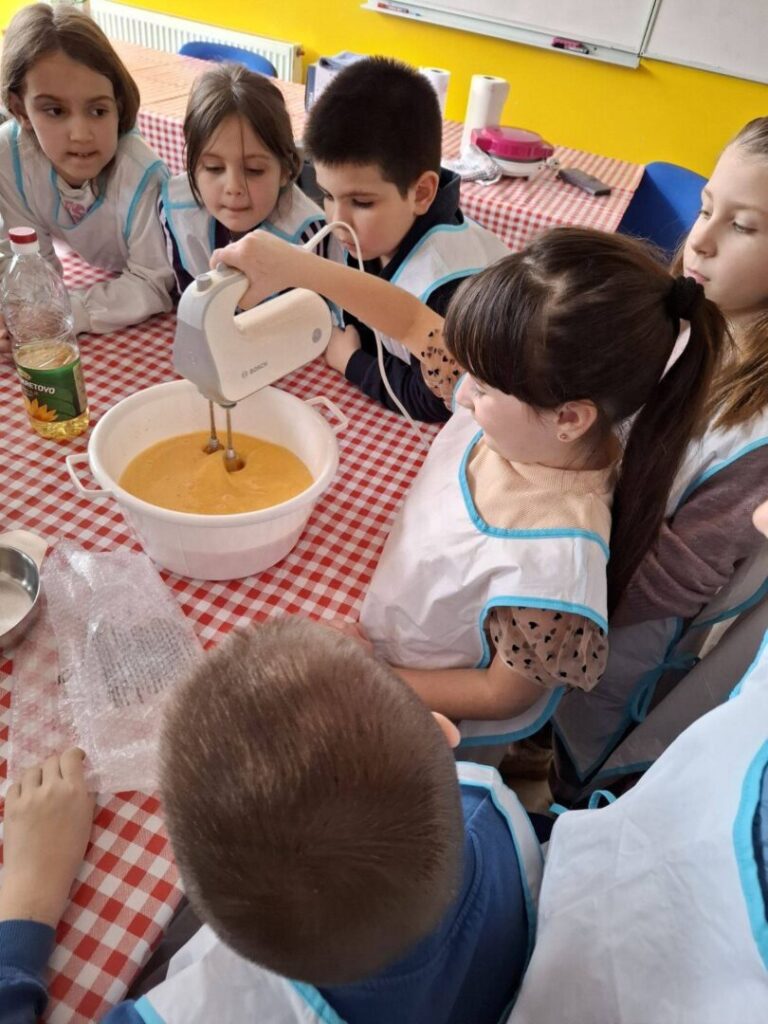 Učenici su najprije učili iščitati recept i pratiti upute, a zatim su se okušali u pripremi smjese. Kroz aktivnost su ponovili i važno gradivo iz matematike – koliko 1 litra ima decilitara te kako se pretvaraju mjerne jedinice mase (kilogrami, dekagrami i grami). Učenje je bilo zanimljivo, opipljivo i, što je najvažnije, vrlo ukusno.