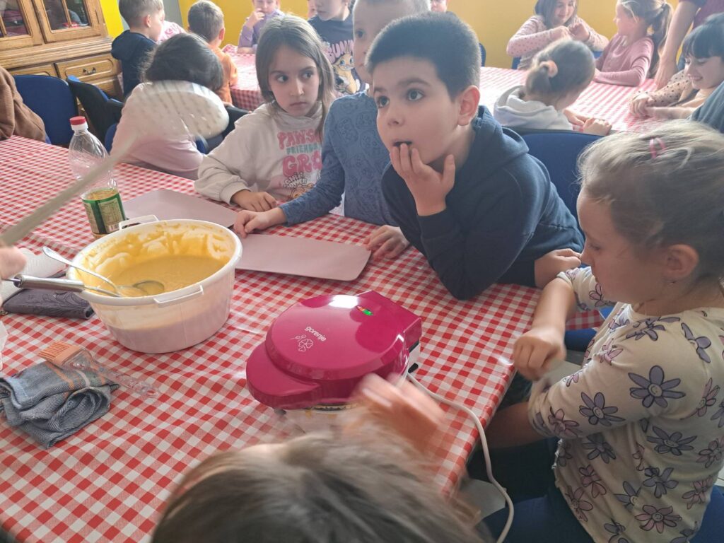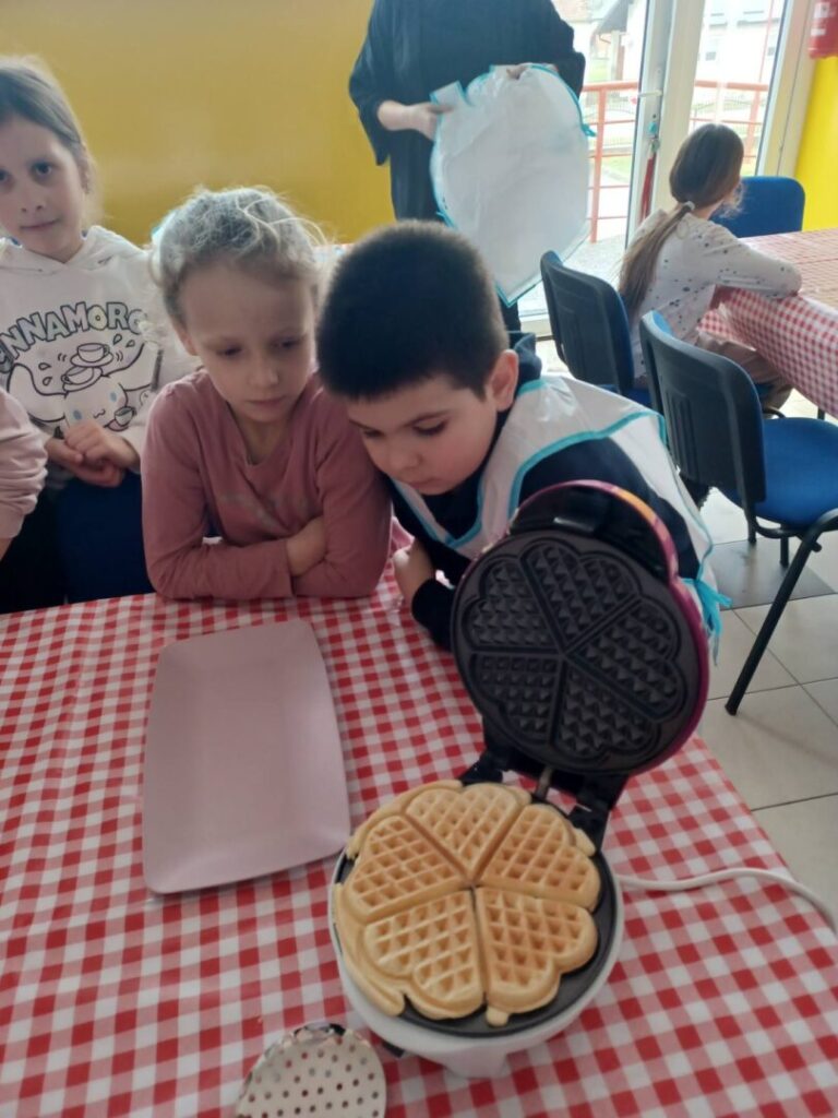 U sklopu B1 aktivnosti Domaćinstvo, učenici 1. i 2. razreda, zajedno sa svojim učiteljicama Željkom i Gordanom, sudjelovali su u slatkoj i poučnoj aktivnosti koja je doslovno – zamirisala cijelu učionicu. Ovaj put pekli smo vafle, a učenje je bilo povezano s praktičnim radom i svakodnevnim životnim vještinama.