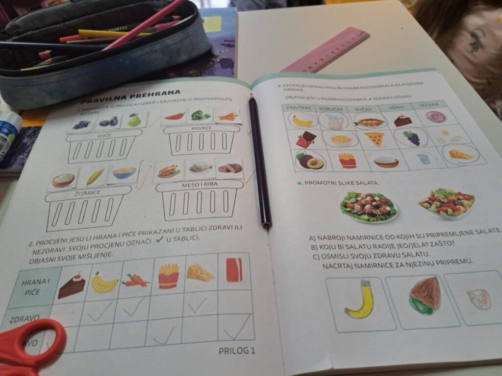 Nakon toga su predstavili svoje jelovnike. U radnoj bilježnici nacrtali su i obojali svoje najdraže, a zdrave namirnice.