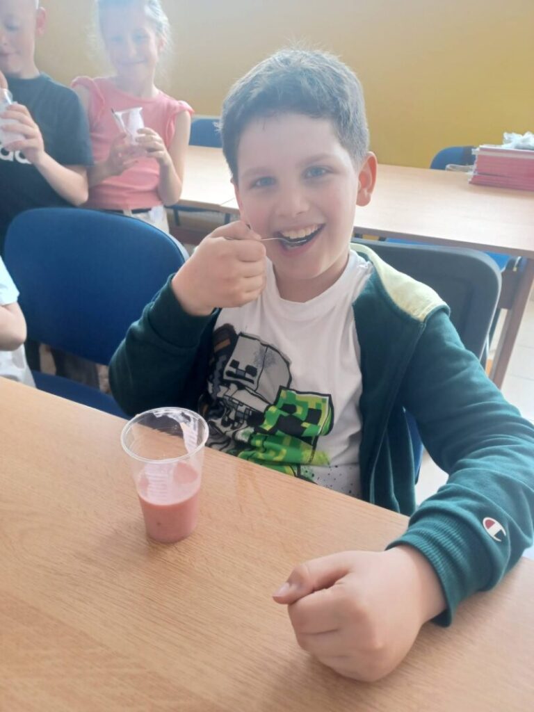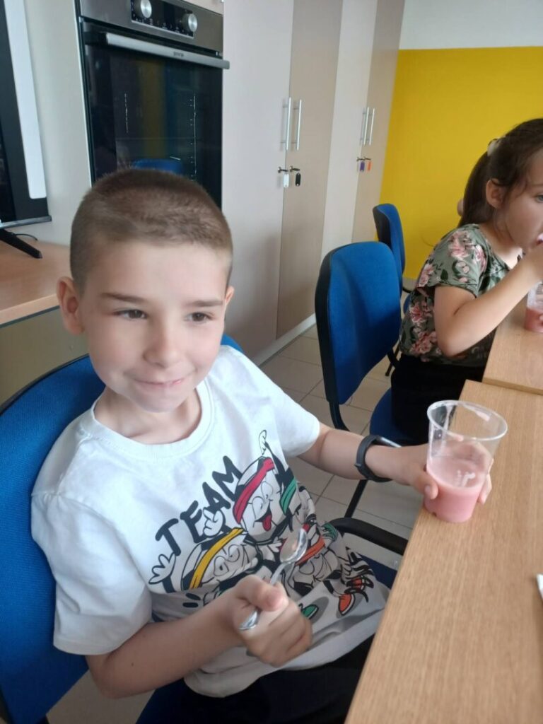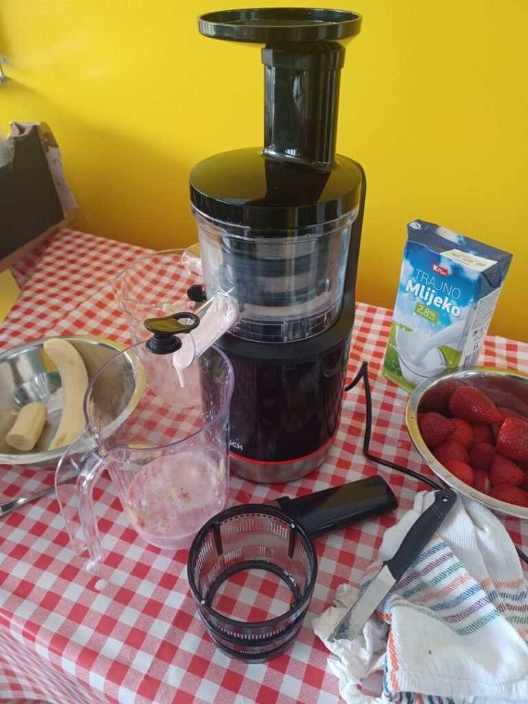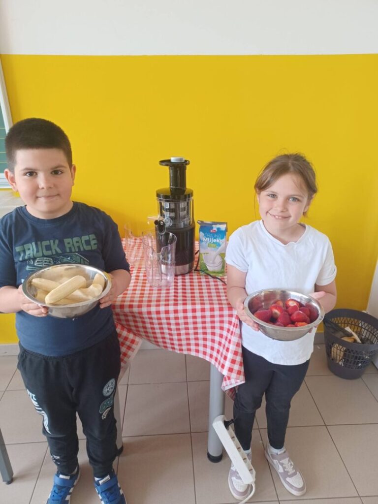 Kroz zanimljive aktivnosti naučili su i kako iščitati jednostavan recept – pripremali su frape od jagoda i banane. Uz pomoć blendera okušali su se u samostalnoj pripremi ovog zdravog napitka te na kraju uživali u slatkoj degustaciji.