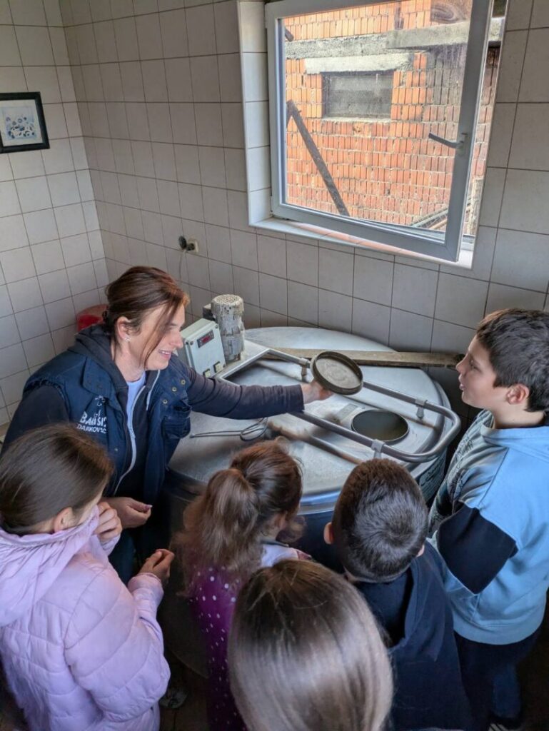 Obitelj Barišić s puno ljubavi i predanosti bavi se uzgojem krava, izradom domaćih sireva i prodajom svježeg mlijeka Dukatu. Toplo su dočekali naše učenike te ih počastili svojim domaćim proizvodima, što je mnogima bio prvi susret s ovakvom vrstom gospodarstva iz prve ruke.
