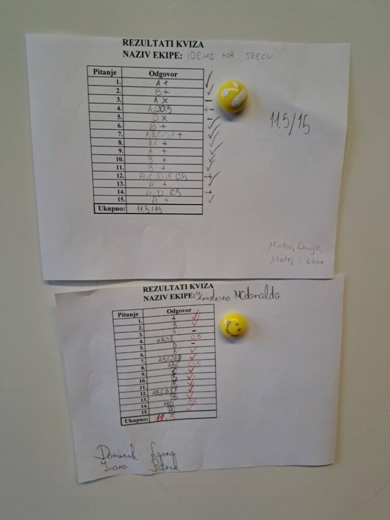 Na Satovima razrednika učenici 7. razreda, razrednice Biljane Bošnjak i 8. razreda, čija je razrednica Nikolina Pastuović, odigrali su kviz Udruge Pragma.